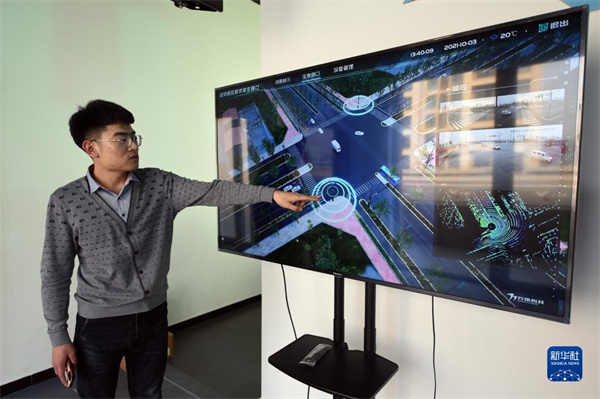 工作人員在雄安數(shù)字交通實驗室介紹數(shù)字交通實驗室項目(1月7日攝)。新華社記者 駱學(xué)峰 攝
