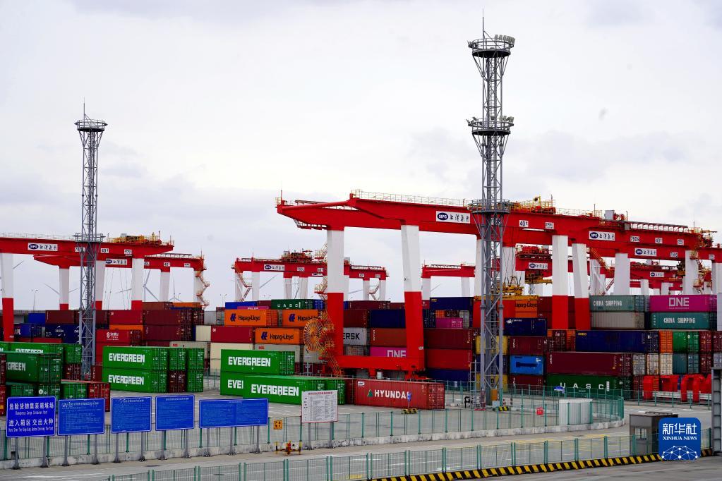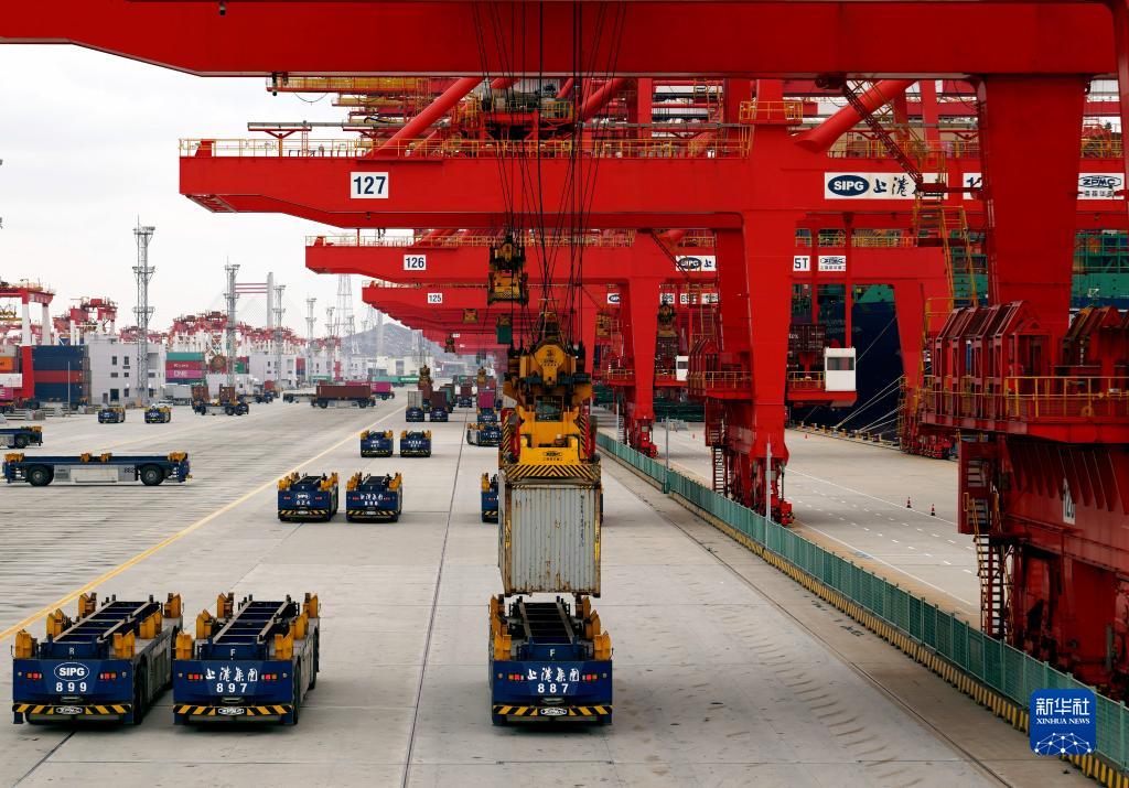 2月17日拍攝的上海洋山港四期自動化碼頭。新華社記者 楊有宗 攝