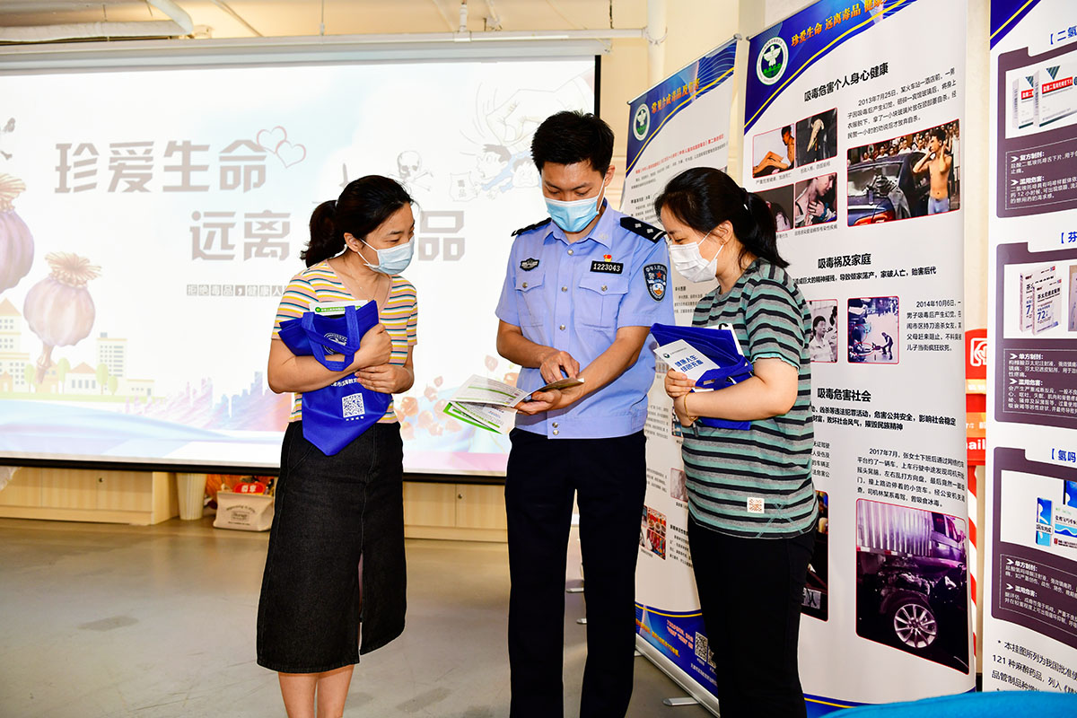 圖為民警向工作人員講解毒品危害。