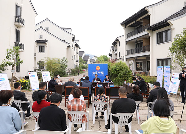 浙江省湖州市安吉縣人民檢察院踐行鄉(xiāng)村微檢察,將公開聽證會開進鄉(xiāng)村,讓法律服務(wù)的“煙火氣”延伸到大街小巷。 葉健 攝