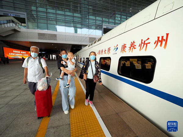 乘客在山西太原南站準備乘坐D5306次動車組列車(2022年7月4日攝)。新華社發(fā)(張炯攝)