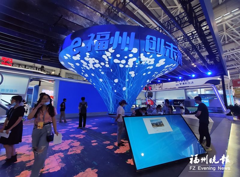 在福州展區(qū),這一印象更是凸顯。和往屆相比,福州展區(qū)的科技感大幅度提升。以深藍色為主基調(diào)的展區(qū)中央,一個由先進LED顯示設備做成的“榕樹”流光溢彩,“樹頂”上“e福州創(chuàng)未來”的字樣,生動詮釋福州展區(qū)的主題。主辦方表示,預計開展后,福州展區(qū)將會成為觀眾的一個必選“打卡地”。