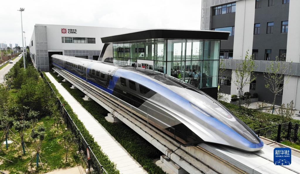 這是在山東青島拍攝的時(shí)速600公里高速磁浮交通系統(tǒng)(2021年7月20日攝,無(wú)人機(jī)照片)。新華社記者 李紫恒 攝