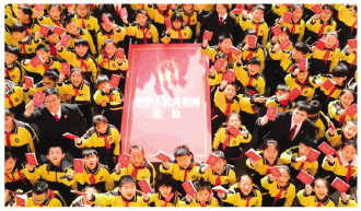 2017年10月24日,中國共產黨第十九次全國代表大會通過了關于十八屆中央委員會報告的決議。報告明確了全面推進依法治國總目標,提出“成立中央全面依法治國領導小組,加強對法治中國建設的統(tǒng)一領導”。 可為 攝