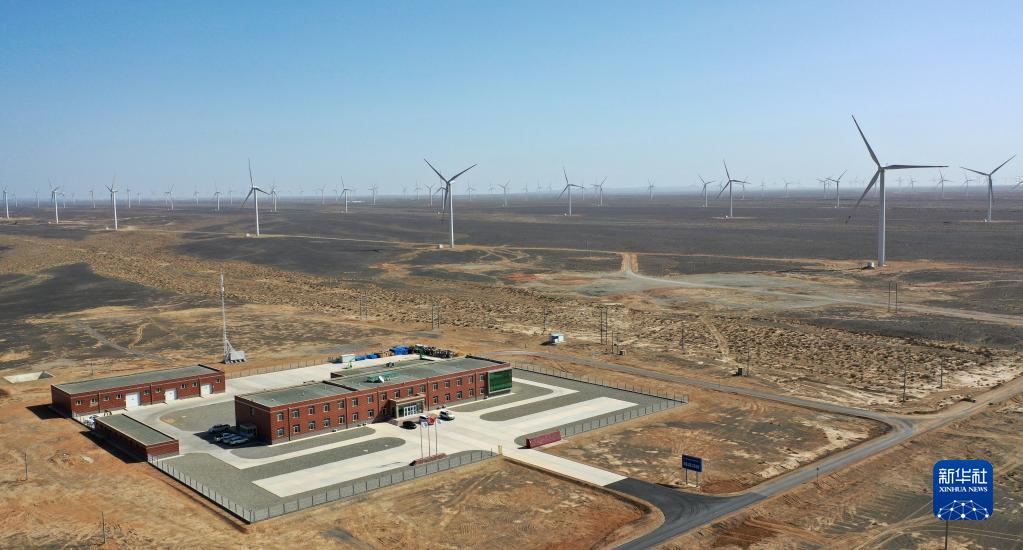 這是2022年4月16日拍攝的甘肅省酒泉市境內(nèi)的風電基地(無人機照片)。新華社記者 陳斌 攝