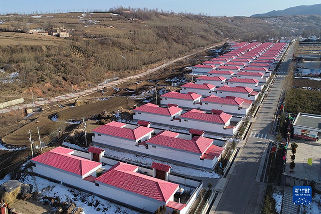 2021年2月6日在甘肅省定西市渭源縣元古堆村拍攝的鄉(xiāng)村道路和易地扶貧搬遷點。新華社記者 馬希平 攝