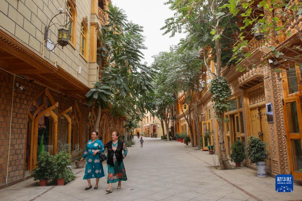 這是在新疆和田市拍攝的由北京市援疆資金支持改造的團城(2019年8月1日攝)。為改善居住環(huán)境,保持和田歷史文化街區(qū)風(fēng)貌,當(dāng)?shù)乩帽本┦性Y金,對和田老城區(qū)進行保護、安居、旅游與就業(yè)四位一體的改造。新華社發(fā)(許珠珠 攝)