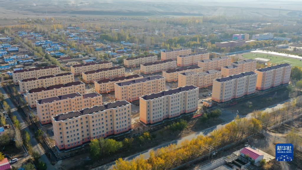 這是新疆昌吉市阿什里鄉(xiāng)天鵝小鎮(zhèn)(無人機照片,2020年10月16日攝)。天鵝小鎮(zhèn)是由福建援疆泉州分指揮部支援建設(shè)的牧民定居項目。新華社記者 丁磊 攝