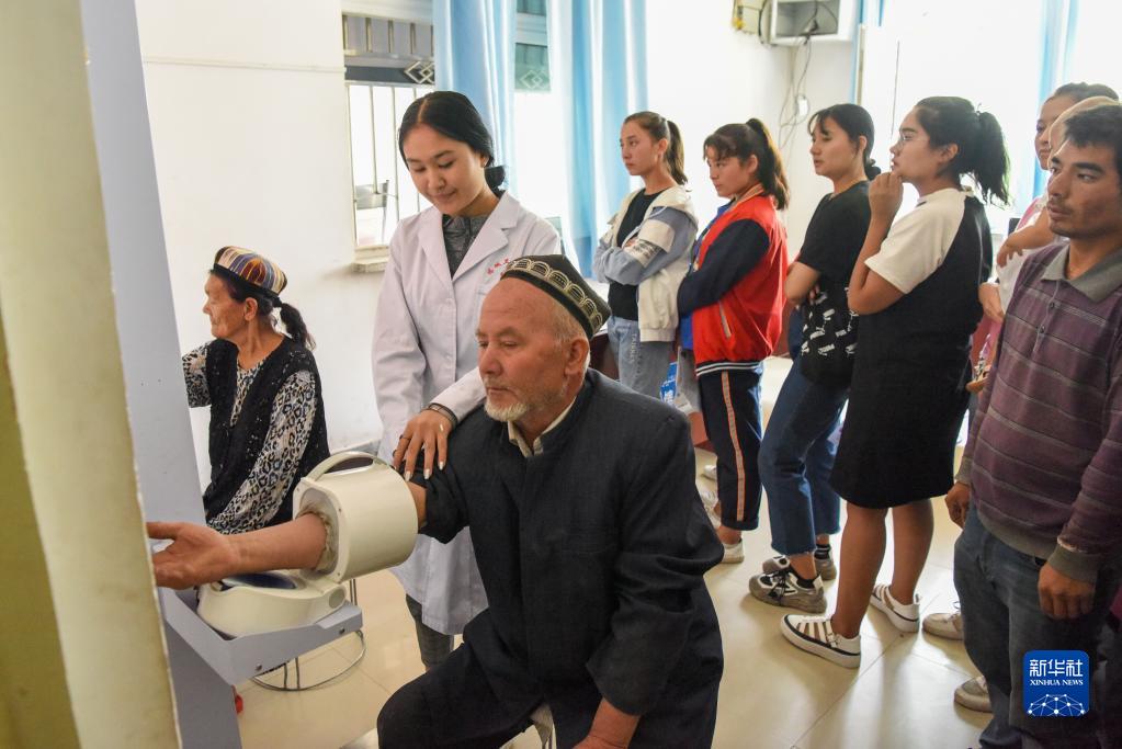 在新疆和田市伊里其鄉(xiāng)中心衛(wèi)生院,居民接受免費健康體檢(2019年8月23日攝)。新華社記者 丁磊 攝