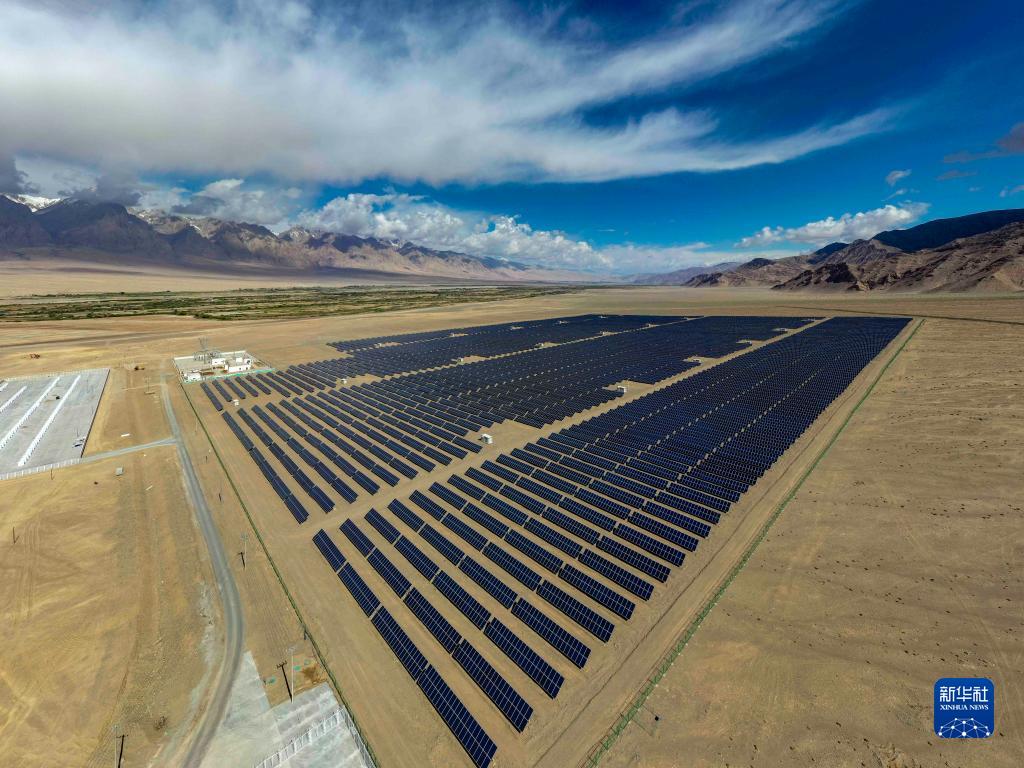 這是深圳援建的新疆塔什庫爾干塔吉克自治縣2萬千瓦太陽能光伏扶貧電站(無人機照片,2020年6月15日攝)。新華社記者 胡虎虎 攝