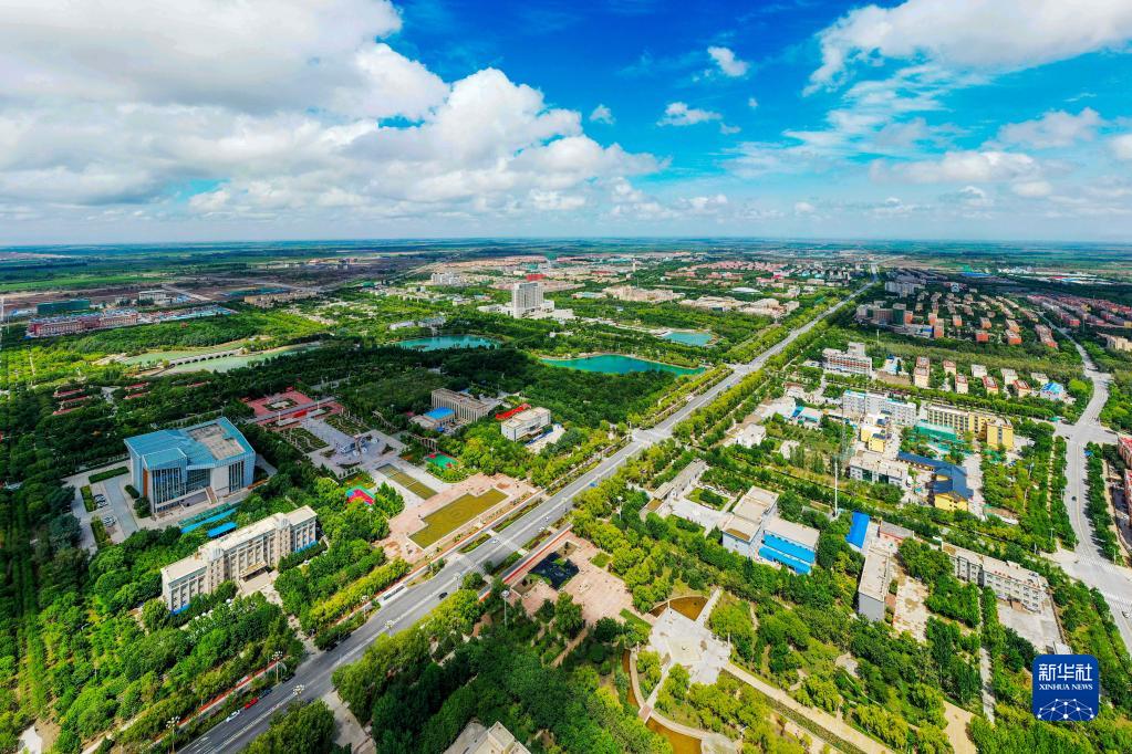 這是2021年7月22日拍攝的新疆生產(chǎn)建設(shè)兵團(tuán)第三師圖木舒克市(無人機(jī)照片)。新華社發(fā)(王俊龍 攝)