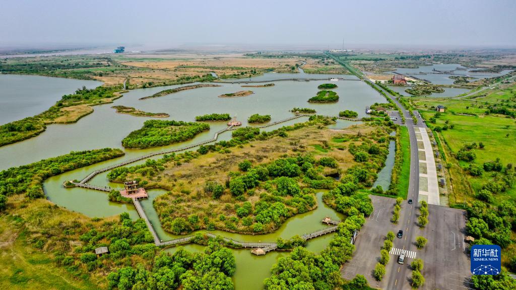 這是2021年5月13日拍攝的山東黃河三角洲國家級自然保護區(qū)景色(無人機照片)。新華社記者 郭緒雷 攝