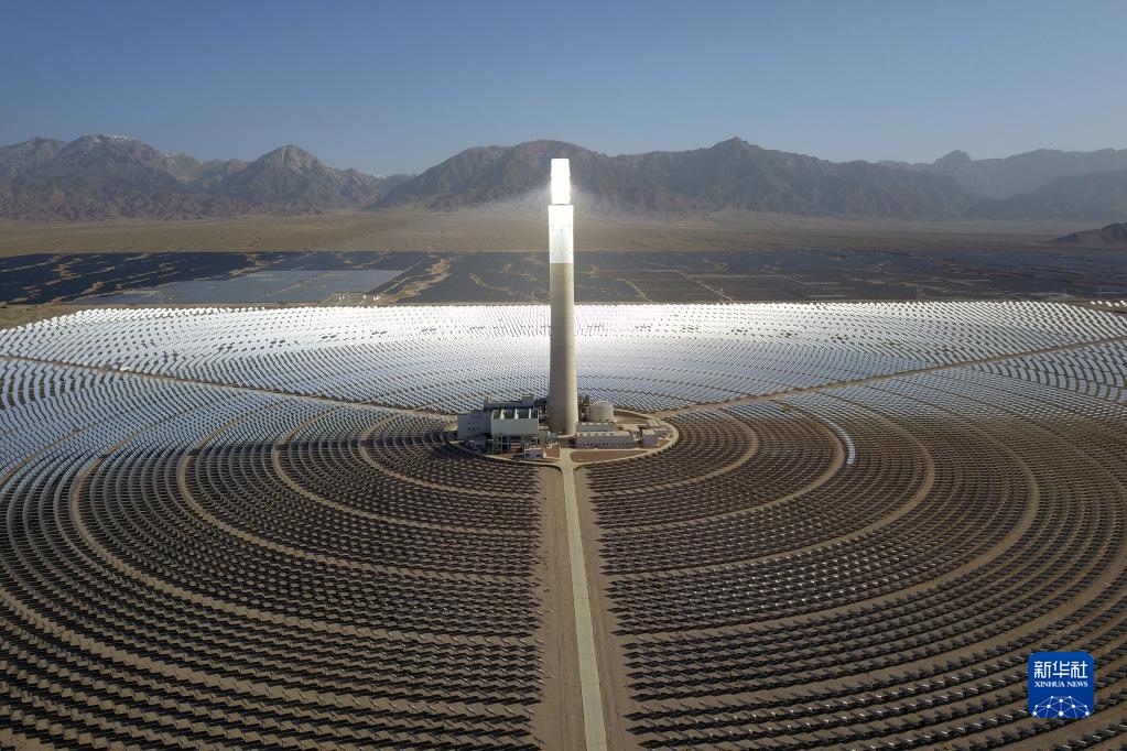這是2022年6月8日在海西蒙古族藏族自治州德令哈市光伏(光熱)產(chǎn)業(yè)園拍攝的青海中控德令哈50兆瓦光熱電站(無人機照片)。新華社記者 范培珅 攝