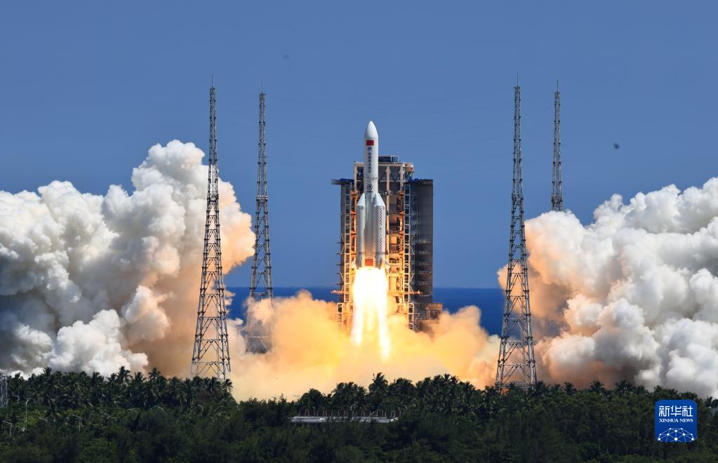 搭載問天實(shí)驗(yàn)艙的長征五號B遙三運(yùn)載火箭,在我國文昌航天發(fā)射場點(diǎn)火發(fā)射(2022年7月24日攝)。新華社記者 李剛 攝