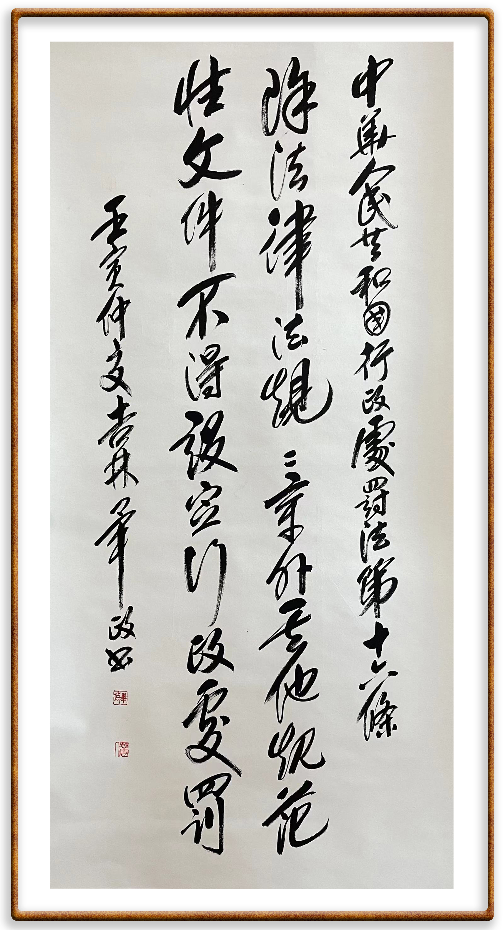 繼《中華人民共和國(guó)民法典》《中華人民共和國(guó)土地管理法》《中華人民共和國(guó)土地管理法實(shí)施條例》《中華人民共和國(guó)法律援助法》之后,法治日?qǐng)?bào)社聯(lián)合北京市司法局、北京市書法家協(xié)會(huì),將筆端對(duì)準(zhǔn)《中華人民共和國(guó)憲法》和《中華人民共和國(guó)行政處罰法》。