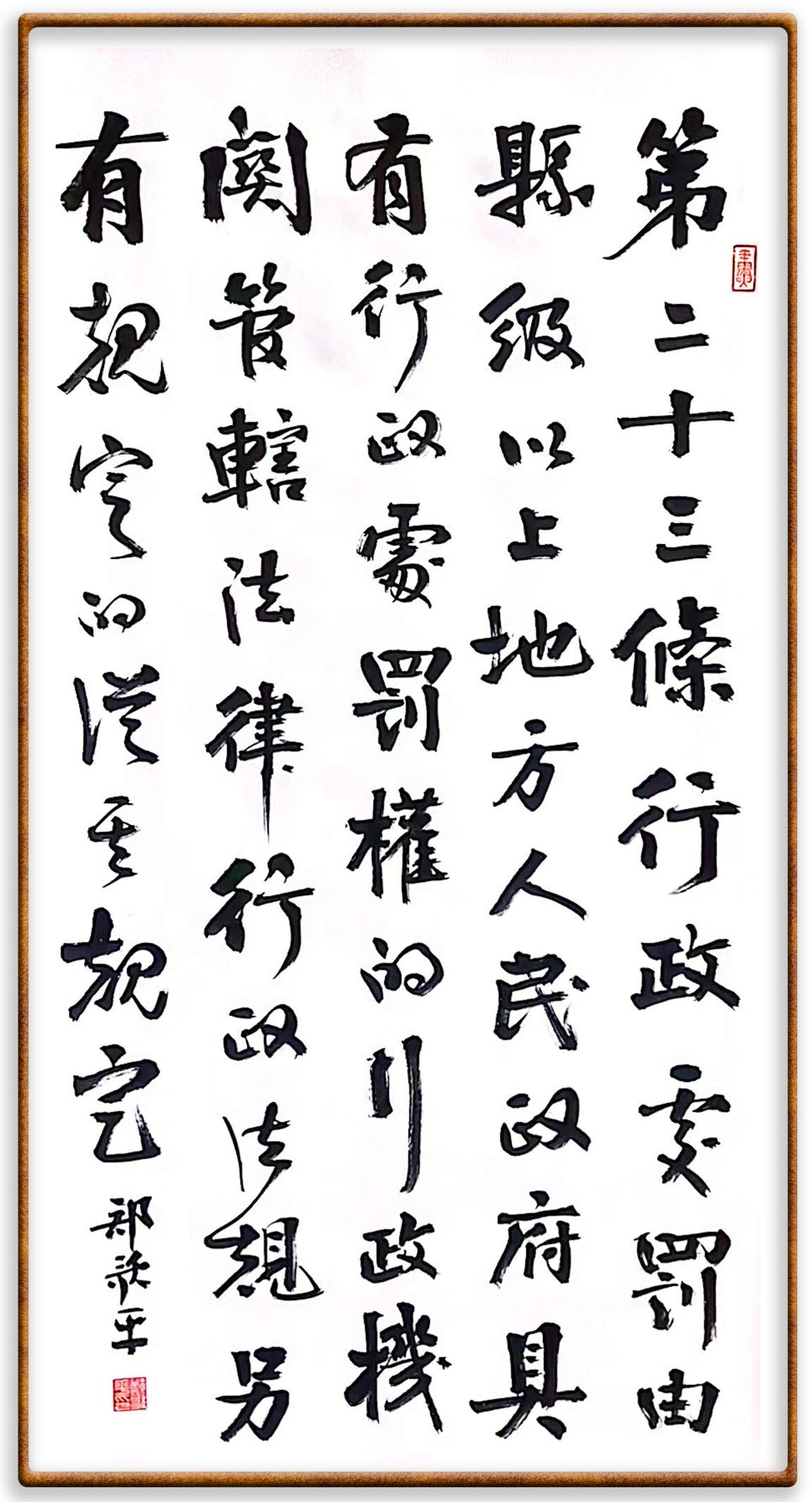 繼《中華人民共和國民法典》《中華人民共和國土地管理法》《中華人民共和國土地管理法實施條例》《中華人民共和國法律援助法》之后,法治日報社聯(lián)合北京市司法局、北京市書法家協(xié)會,將筆端對準《中華人民共和國憲法》和《中華人民共和國行政處罰法》。