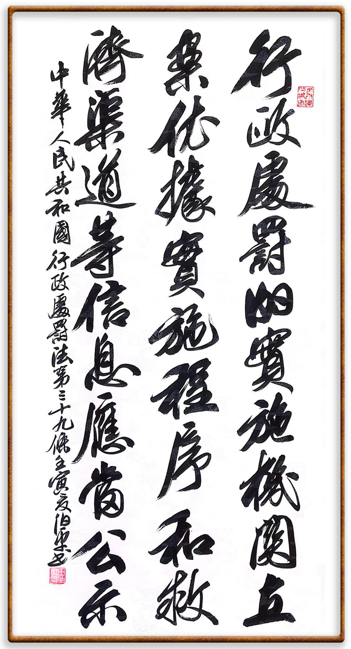 繼《中華人民共和國(guó)民法典》《中華人民共和國(guó)土地管理法》《中華人民共和國(guó)土地管理法實(shí)施條例》《中華人民共和國(guó)法律援助法》之后,法治日?qǐng)?bào)社聯(lián)合北京市司法局、北京市書(shū)法家協(xié)會(huì),將筆端對(duì)準(zhǔn)《中華人民共和國(guó)憲法》和《中華人民共和國(guó)行政處罰法》。