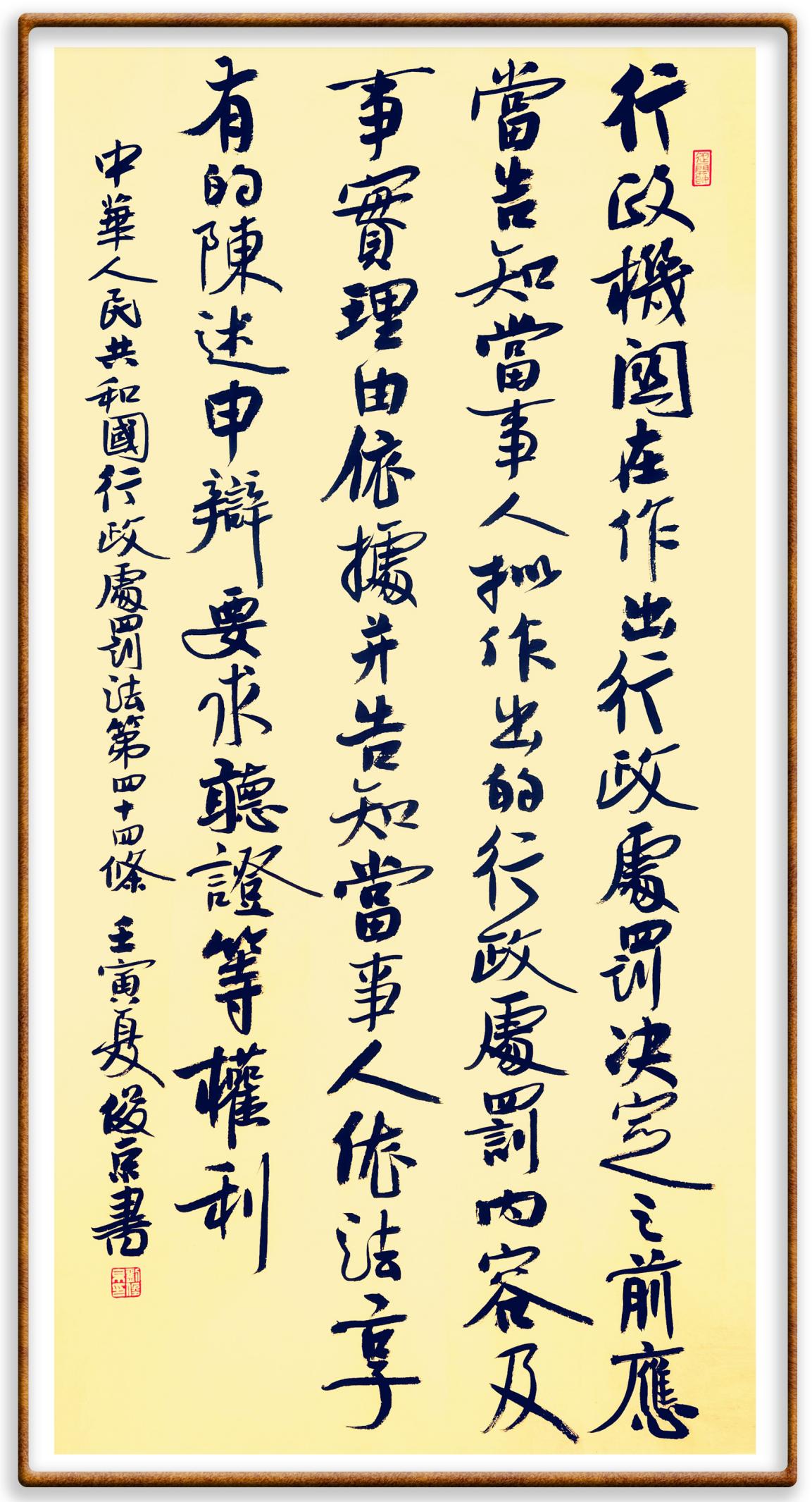 繼《中華人民共和國民法典》《中華人民共和國土地管理法》《中華人民共和國土地管理法實施條例》《中華人民共和國法律援助法》之后,法治日報社聯(lián)合北京市司法局、北京市書法家協(xié)會,將筆端對準(zhǔn)《中華人民共和國憲法》和《中華人民共和國行政處罰法》。