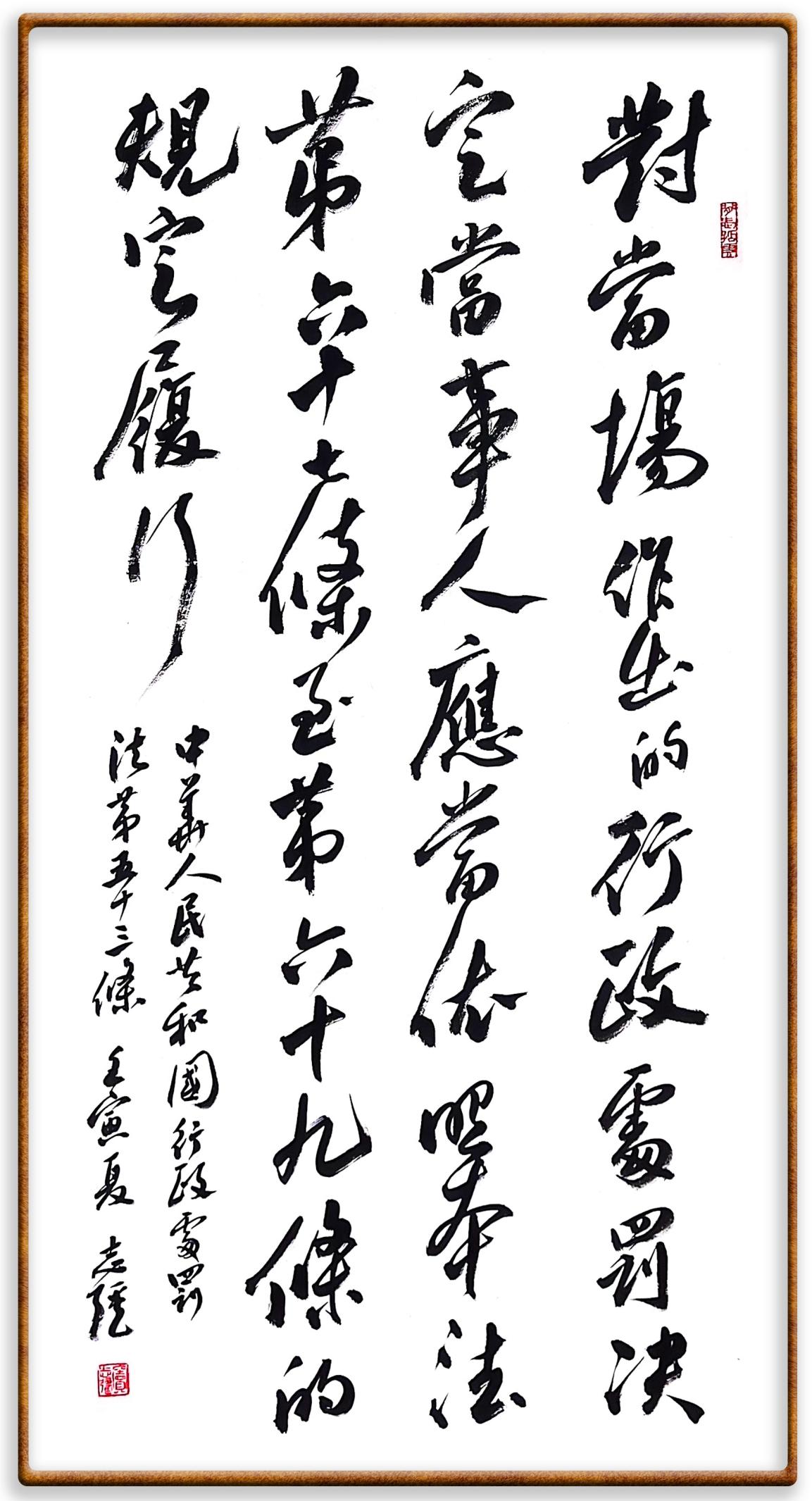繼《中華人民共和國(guó)民法典》《中華人民共和國(guó)土地管理法》《中華人民共和國(guó)土地管理法實(shí)施條例》《中華人民共和國(guó)法律援助法》之后,法治日?qǐng)?bào)社聯(lián)合北京市司法局、北京書法家協(xié)會(huì),將筆端對(duì)準(zhǔn)《中華人民共和國(guó)憲法》和《中華人民共和國(guó)行政處罰法》。