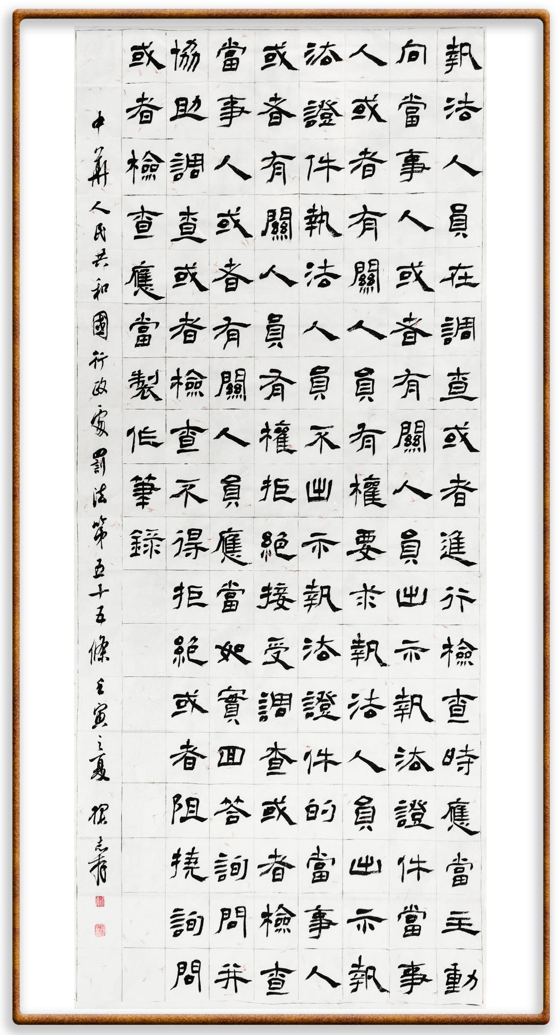 繼《中華人民共和國(guó)民法典》《中華人民共和國(guó)土地管理法》《中華人民共和國(guó)土地管理法實(shí)施條例》《中華人民共和國(guó)法律援助法》之后,法治日?qǐng)?bào)社聯(lián)合北京市司法局、北京書(shū)法家協(xié)會(huì),將筆端對(duì)準(zhǔn)《中華人民共和國(guó)憲法》和《中華人民共和國(guó)行政處罰法》。