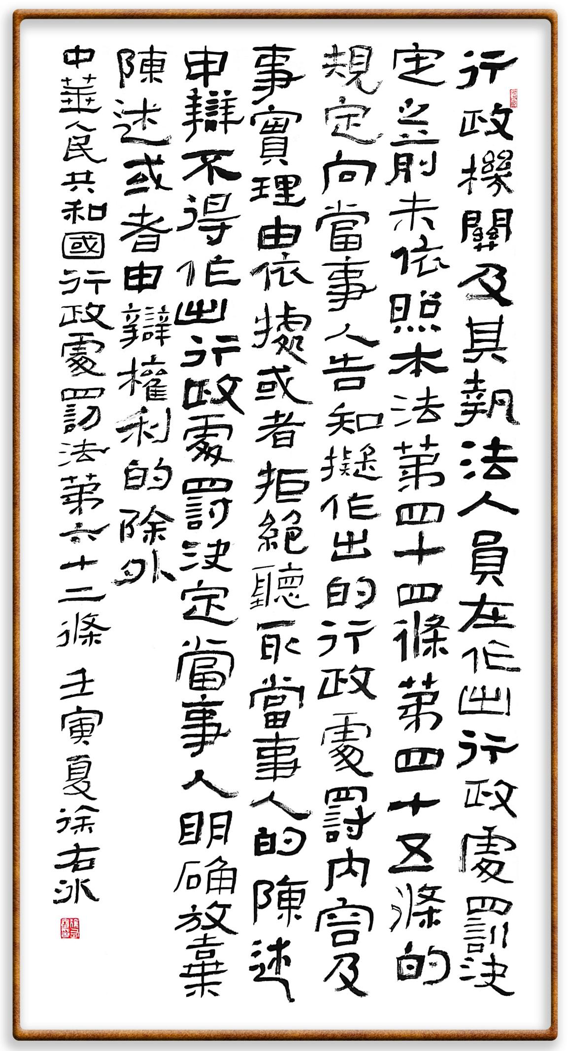 繼《中華人民共和國(guó)民法典》《中華人民共和國(guó)土地管理法》《中華人民共和國(guó)土地管理法實(shí)施條例》《中華人民共和國(guó)法律援助法》之后,法治日?qǐng)?bào)社聯(lián)合北京市司法局、北京書法家協(xié)會(huì),將筆端對(duì)準(zhǔn)《中華人民共和國(guó)憲法》和《中華人民共和國(guó)行政處罰法》。