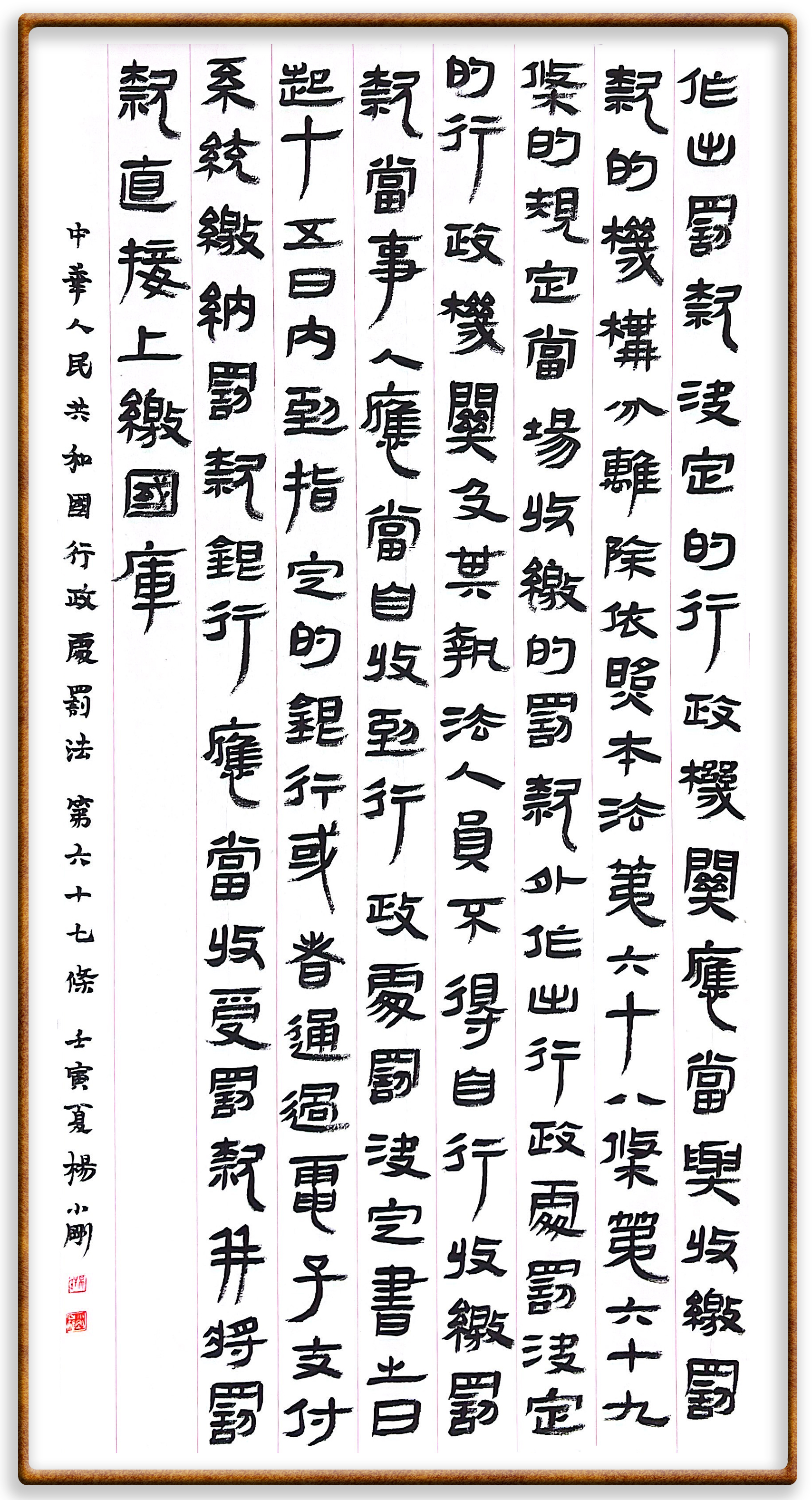 繼《中華人民共和國(guó)民法典》《中華人民共和國(guó)土地管理法》《中華人民共和國(guó)土地管理法實(shí)施條例》《中華人民共和國(guó)法律援助法》之后,法治日?qǐng)?bào)社聯(lián)合北京市司法局、北京書(shū)法家協(xié)會(huì),將筆端對(duì)準(zhǔn)《中華人民共和國(guó)憲法》和《中華人民共和國(guó)行政處罰法》。