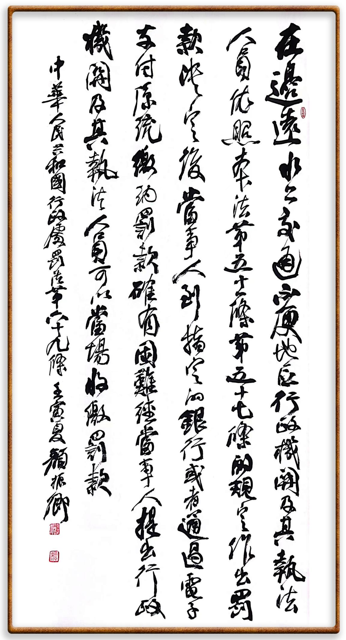 繼《中華人民共和國民法典》《中華人民共和國土地管理法》《中華人民共和國土地管理法實(shí)施條例》《中華人民共和國法律援助法》之后,法治日報(bào)社聯(lián)合北京市司法局、北京書法家協(xié)會,將筆端對準(zhǔn)《中華人民共和國憲法》和《中華人民共和國行政處罰法》。