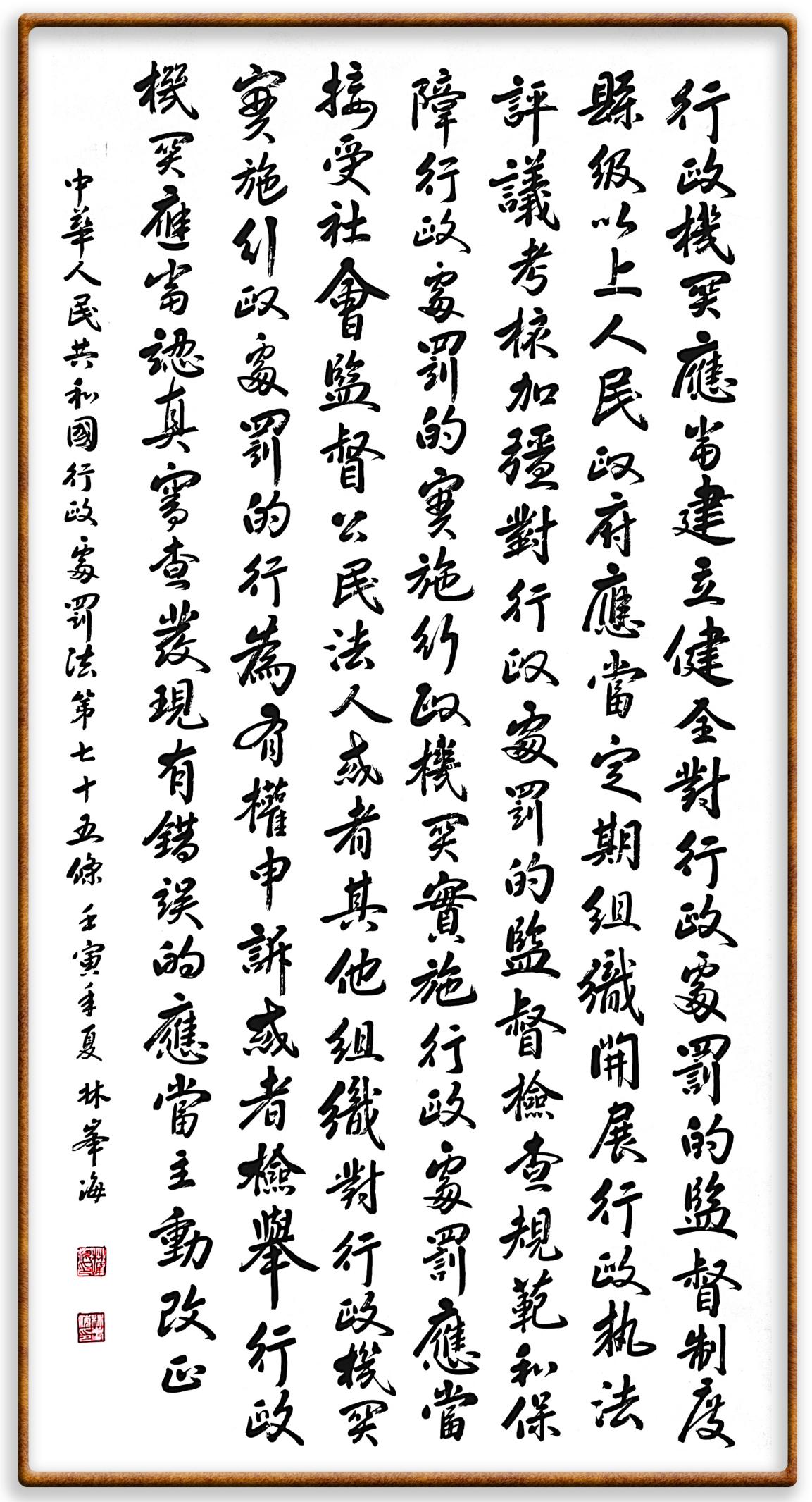 繼《中華人民共和國民法典》《中華人民共和國土地管理法》《中華人民共和國土地管理法實施條例》《中華人民共和國法律援助法》之后,法治日報社聯(lián)合北京市司法局、北京書法家協(xié)會,將筆端對準(zhǔn)《中華人民共和國憲法》和《中華人民共和國行政處罰法》。