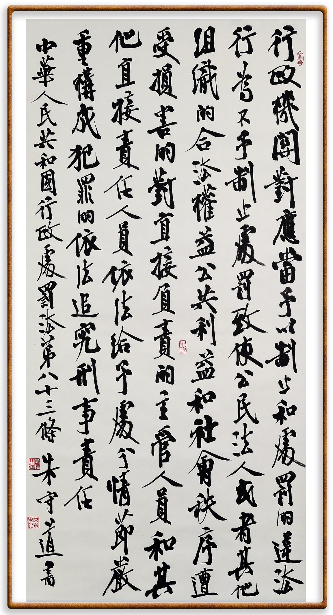 繼《中華人民共和國(guó)民法典》《中華人民共和國(guó)土地管理法》《中華人民共和國(guó)土地管理法實(shí)施條例》《中華人民共和國(guó)法律援助法》之后,法治日?qǐng)?bào)社聯(lián)合北京市司法局、北京書法家協(xié)會(huì),將筆端對(duì)準(zhǔn)《中華人民共和國(guó)憲法》和《中華人民共和國(guó)行政處罰法》。
