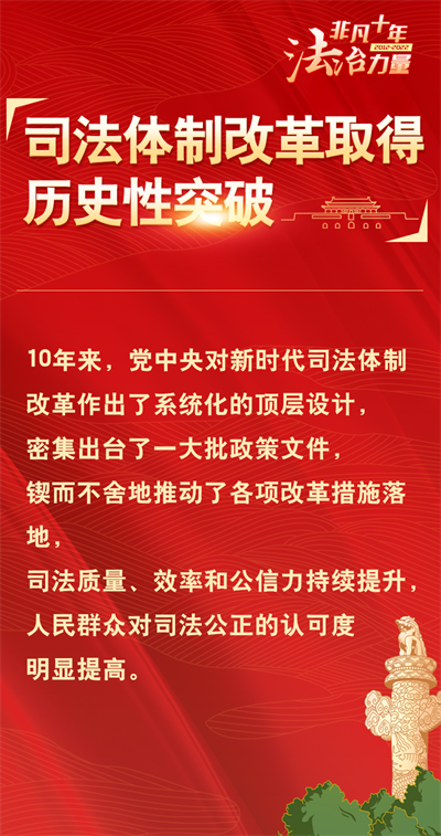 法治網(wǎng)精心策劃制作十期海報,帶您一起領(lǐng)略非凡十年的法治力量!今天為您奉上第六期“司法體制改革取得歷史性突破”。