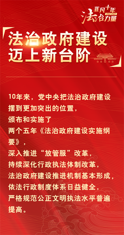 法治網(wǎng)精心策劃制作十期海報,帶您一起領略非凡十年的法治力量!今天為您奉上第五期“法治政府建設邁上新臺階”。