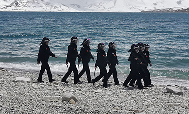 1月31日早晨,沖巴湖執(zhí)勤點(diǎn)外一片冰天雪地,日喀則邊境管理支隊(duì)薩瑪達(dá)邊境派出所民警在沖巴湖旁開(kāi)展巡邏 ……